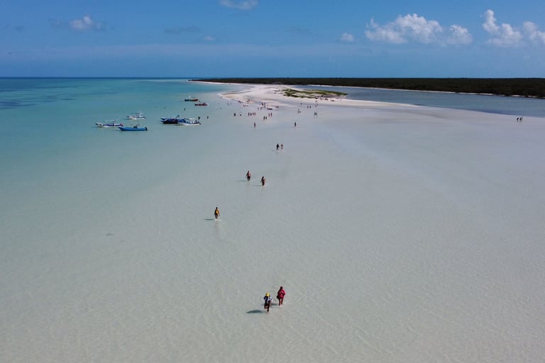 Visitar Isla Holbox ofrece una experiencia bohemia y aventurera, con playas de arena blanca y aguas tranquilas, es el lugar perfecto para disfrutar de un paseo relajado, curiosear un poquito los coloridos murales de arte callejero que decoran la isla en sus calles de arena. El Cenote Yalahau y manglares, ofrecen un ambiente perfecto para el avistamiento de majestuosas aves y punta Punta Mosquito destaca por sus aguas poco profundas y el banco de arena para caminar sobre el mar.