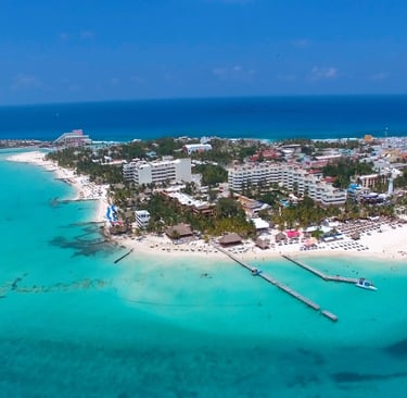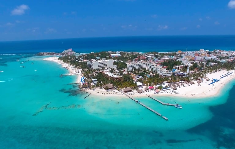 Isla Mujeres, de 7 kilómetros de largo y 500 metros de ancho, destaca por su mezcla de naturaleza y cultura. famosa por sus playas tranquilas de arena blanca y aguas cristalinas. Para los amantes de la playa y el snorkel en arrecifes de coral y esculturas marinas, este destino es ideal asi como explorar el centro de la isla a tu propio ritmo.