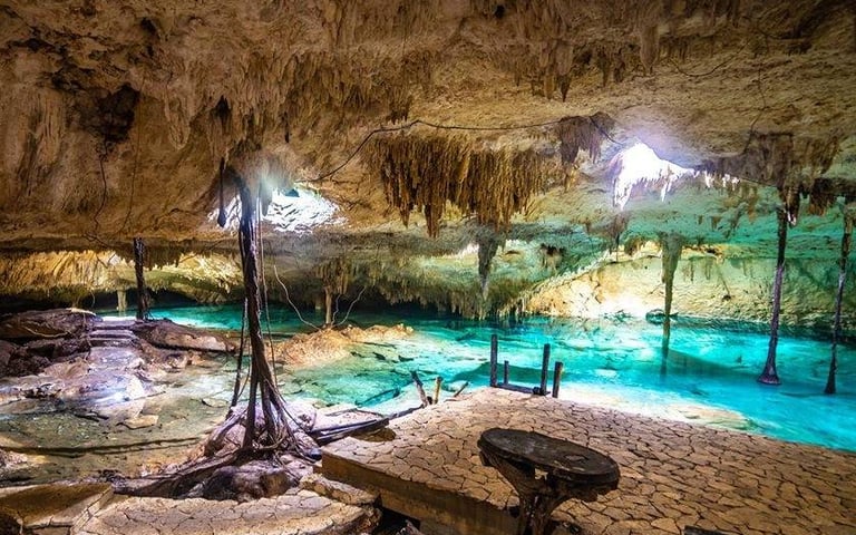 Dos visitas en la Riviera Maya con los sitios ideales para divertirse al máximo. La Bahía de Akumal, considerada la playa mas interesante y encantadora en la Riviera Maya donde se disfruta un tierno encuentro con tortugas marinas en su hábitat natural y un cenote impresionante para que la experiencia del día sea inolvidable !