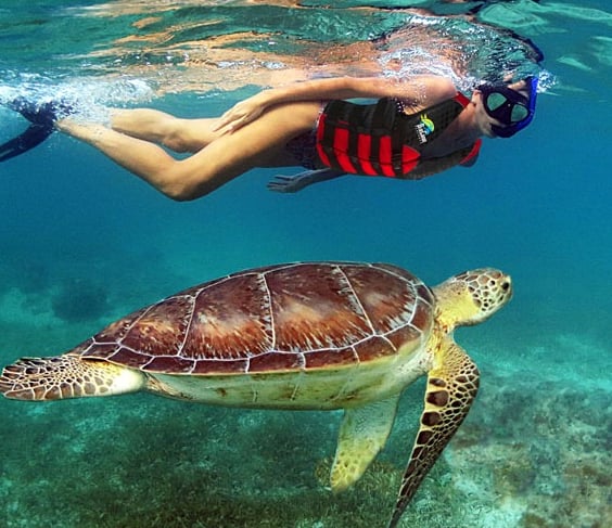 En el Tour Privado Tortugas + Cenote desde Tulum, pasaremos por usted hasta su hotel, nos dirigiremos a la Bahía de Akumal; una de las playas más bonitas de la Riviera Maya. En sus tranquilas aguas protegidas por un arrecife, habitan tortugas marinas y disfrutaras de la actividad de snorkel mirando una gran variedad de vida marina donde el atractivo principal serán las tortugas marinas en su hábitat natural. Tambien disfrutaras del entorno natural y refrescante de uno de los cenotes mas impresionantes y bellos en la Riviera Maya; hemos seleccionado entre cientos de Cenotes de la zona para que tu experiencia en ese sitio sea inolvidable y te motive a visitar algunos cenotes mas en la selva de la Riviera Maya.